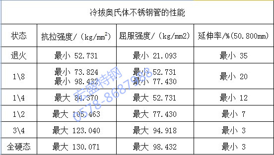 冷拔奧氏體不銹鋼管的性能